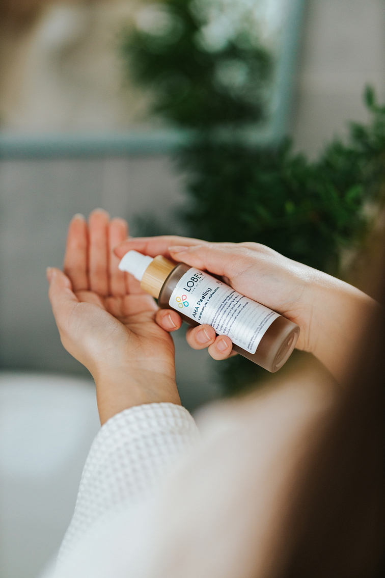 TIPP: Lassen Sie das AHA-Peeling über Nacht einwirken, während Sie schlafen. Tragen Sie es nachts auf die gereinigte Haut auf und waschen Sie morgens alle Überreste mit unserem Gesichtsreinigungsschaum ab.